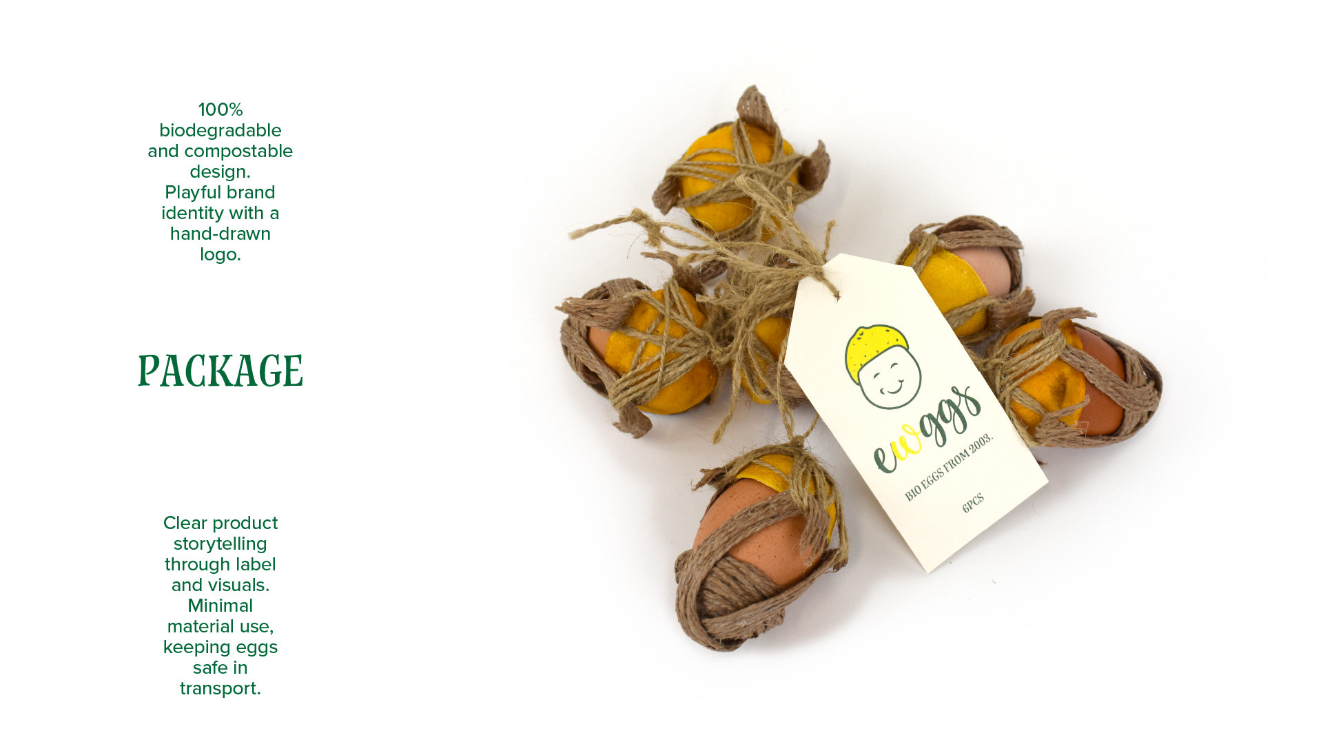 Ewggs is a conceptual eco-friendly egg packaging design developed as a university project. The main goal was to explore sustainable alternatives to traditional egg cartons, focusing on natural, biodegradable materials and simple, handcrafted aesthetics.